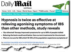 “Hypnosis is twice as effective at relieving agonising symptoms of IBS than other methods, study reveals” Daily Mail 6 Dec 2018. Read full article. PDF 1.3 MB